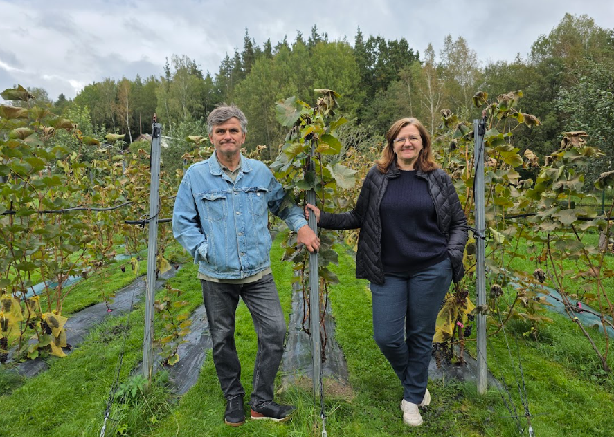 Rugsėjo 28 dienos rytas Vilniaus apylinkėse. Po šalnos nuleipę vynmedžių lapai reiškia, kad 2025 m. nokimo sezonas baigėsi ir nenuskintoms raudonosioms uogoms stigs ne tik cukraus, bet ir aromatų, polifenolių nokumo, o rūgšties bus dar daugiau nei įprastai. „Gal atsirinkę gražiausias kekes padarysimo rožinio vyno“, – kalba Ala ir Jurijus Aškelovičiai, Lietuvos someljė asociacijos lietuviško vyno čempionatui (LSA LVČ) pateikę du 2024 m. derliaus raudonuosius ir laimėję geriausio raudonojo vynuogių vyno titulą.