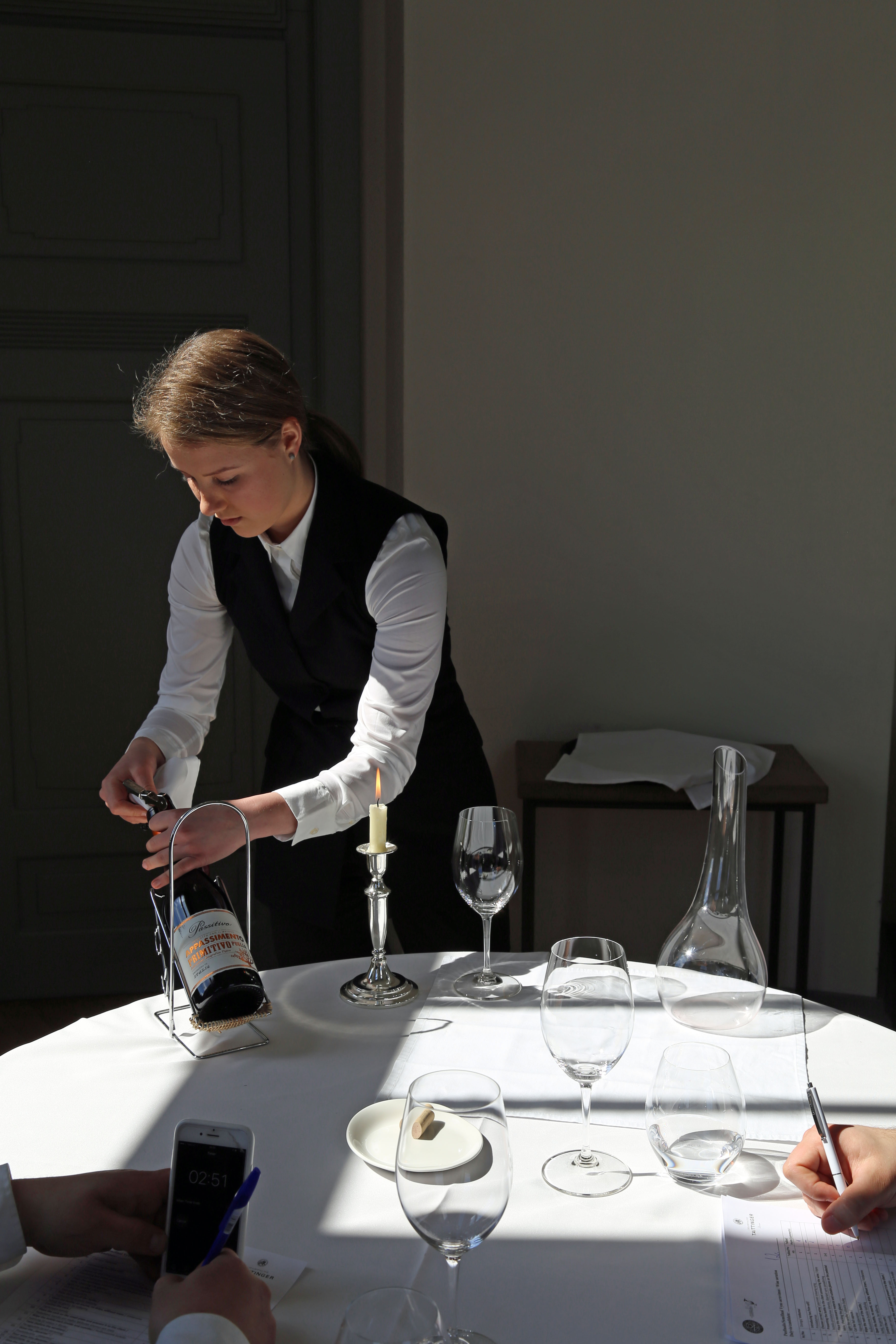Čempionatas prasidėjo nuo dekantavimo užduoties, joje atsiskleidė dalyvių vyno patiekimo technika. Drebančioms rankoms pailsėti ir jauduliui numalšinti padėjo antro etapo testas, kuriame susikaupę someljė tikrino teorines žinias. Vėliau buvo paskelbti čempionato finalininkai. Finale dalyviai turėjo įveikti kelias užduotis. Jie ne tik dekantavo vynus, derino maistą ir vyną, spėjo kelių vynų bei trejų stipriųjų gėrimų rūšis, metus, kilmę, bet ir turėjo pasitelkti teorines, logines žinias norėdami atsakyti į pateiktus klausimus ar galvosūkius. Kai kurių klausimų nepavyko įveikti nei vienam finalininkui. Dalyviai, nepatekę į paskutinį čempionato etapą, rungėsi šampano pilstymo konkurse. Jame geriausiai pasirodė ir tiksliausiai į šešias taures šampaną supilstė Rytis Grigaitis, atstovaujantis restoranui „St. Germain“.